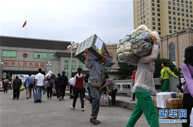 邊民從廣西東興市東興口岸中越友誼大橋進(jìn)出(2018年10月27日攝)。 新華社記者 周華 攝