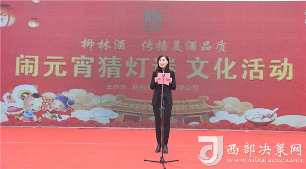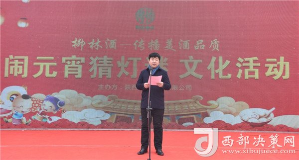 陜西柳林酒業(yè)有限公司副總經(jīng)理周峰發(fā)表講話并向鳳翔父老送上新春祝福和節(jié)日的問(wèn)候。“三陽(yáng)開(kāi)國(guó)泰,美哉柳林酒。今天是正月十五,首先我代表柳林酒業(yè)董事長(zhǎng)付小銅先生、總經(jīng)理柳林先生及全體員工給現(xiàn)場(chǎng)的父老鄉(xiāng)親、朋友們拜個(gè)晚年,祝各位家庭好、事業(yè)好、身體好心情好、運(yùn)氣好、福氣好、財(cái)氣好、愛(ài)情好、朋友好、新的一年一切都好!柳林酒業(yè)主辦的以傳播柳林美酒品質(zhì)為主題的“鬧元宵有獎(jiǎng)猜燈謎文化活動(dòng)”,在此,對(duì)前來(lái)的各位父老鄉(xiāng)親,各界朋友表示衷心的感謝。本次猜謎活動(dòng)獎(jiǎng)品總價(jià)值15萬(wàn)元,共設(shè)1000條謎語(yǔ),只要猜中謎底,關(guān)注“柳林酒業(yè)”,即可獲得獎(jiǎng)品?,F(xiàn)場(chǎng)更有國(guó)家級(jí)評(píng)酒大師親臨現(xiàn)場(chǎng),品柳林美酒,共同傳播美酒文化和歌舞表演環(huán)節(jié),相信大家一定會(huì)不虛此行,度過(guò)一個(gè)難忘的元宵佳節(jié)。
