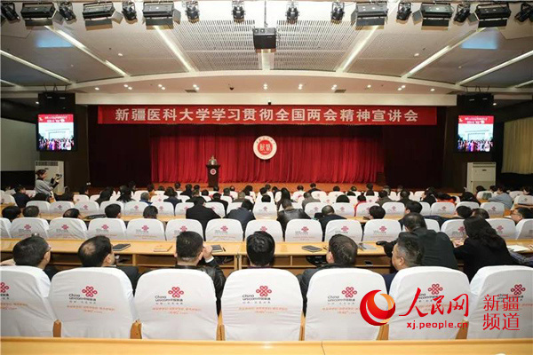 3月17日上午,新疆醫(yī)科大學(xué)會議廳內(nèi)座無虛席,4位出席十三屆全國人大二次會議的新疆全國人大代表返回烏魯木齊后,第一時間在新疆醫(yī)科大學(xué)開展全國兩會精神宣講。
