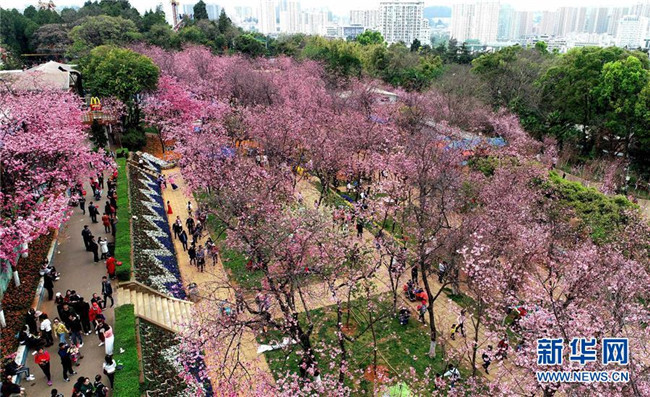 近日,云南省昆明市迎來櫻花盛開的時節(jié)。昆明圓通山公園的數(shù)千株櫻花燦爛綻放,吸引了市民和游客前來觀花賞景。