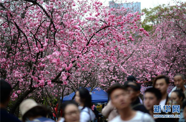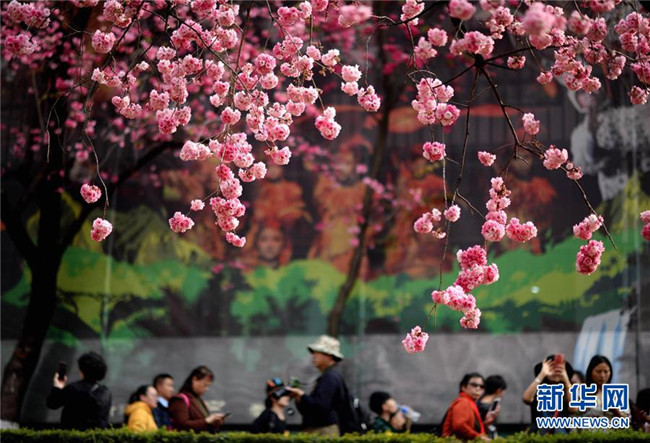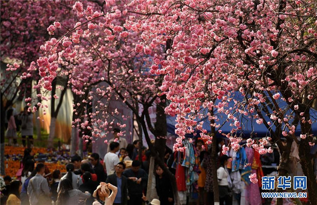 昆明櫻花盛開 游人紛至沓來