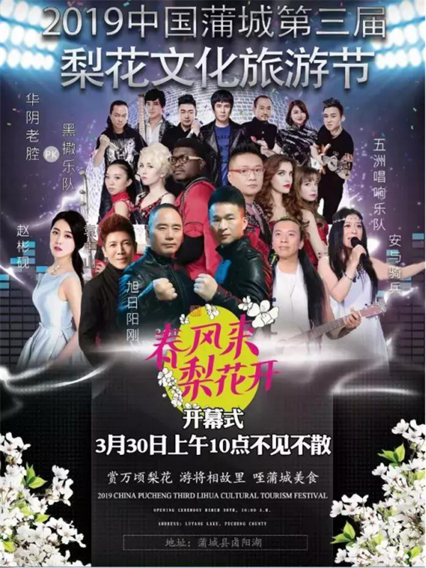 上午10點,蒲城第三屆梨花節(jié)開幕式將在這里拉開帷幕。吹著春日的微風,觀看由重磅嘉賓組成的大型文藝演出,享受一場文化與音樂交融的視覺、聽覺盛宴!