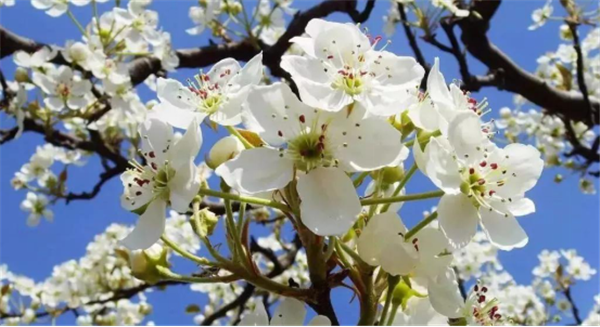 天下的花中,要論白,當(dāng)數(shù)梨花,素潔淡雅如玉骨冰肌,素有“不愁占斷天下白,正恐壓盡人間花”的極高贊譽(yù)。