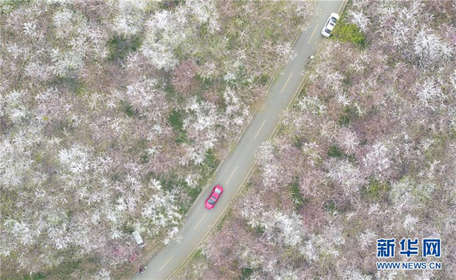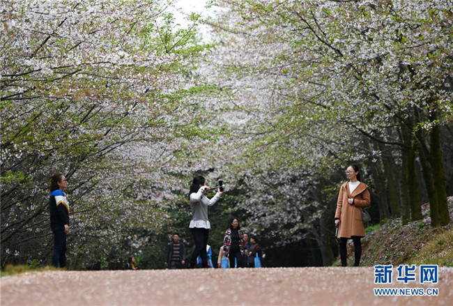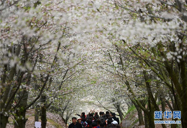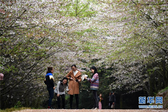 仲春時節(jié),位于貴州省貴安新區(qū)櫻花觀光園內(nèi)的櫻花競相綻放,如白雪般的櫻花海吸引眾多游客前來賞花觀光。