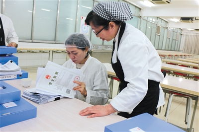 北京市陳經(jīng)綸中學(xué)高中校區(qū)負責(zé)人檢查食堂營業(yè)執(zhí)照。校方供圖