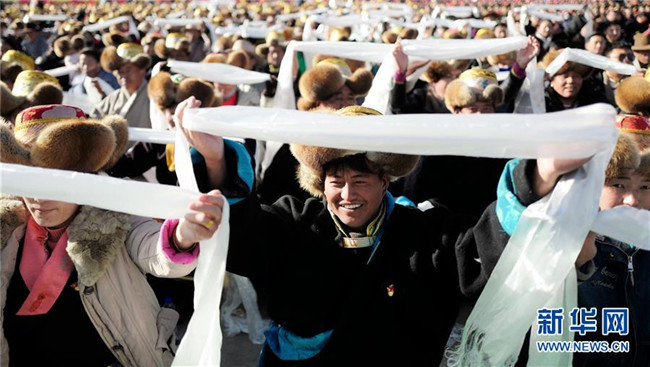 3月28日,慶祝西藏民主改革60周年大會在拉薩布達拉宮廣場舉行。新華社記者 普布扎西 攝