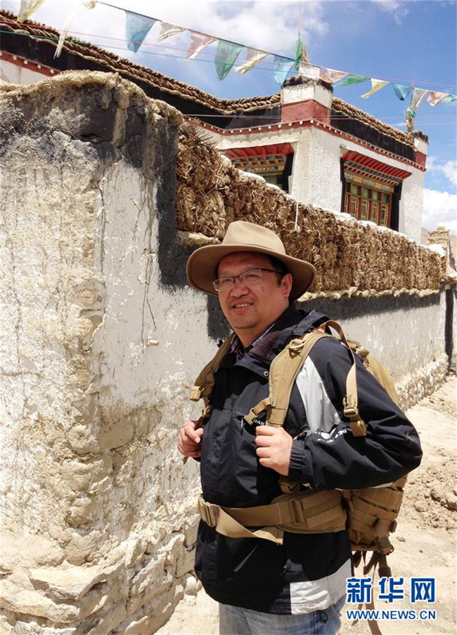 復(fù)旦大學教授鐘揚在西藏日喀則進行植物采樣期間留影(2013年8月4日攝)。新華社發(fā)(馮艾 攝)