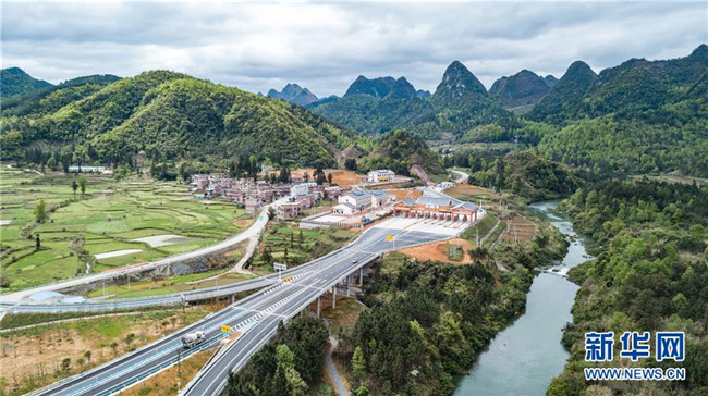4月3日無(wú)人機(jī)拍攝的三荔高速水各至荔波東路段。 新華社記者 陶亮 攝