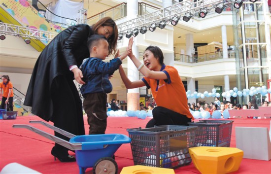 4月2日,早教老師與自閉癥患兒家庭協(xié)作完成互動游戲。當(dāng)日是第十二個“世界自閉癥關(guān)注日”,圍繞今年的主題“消除誤區(qū),倡導(dǎo)全納”,銀川市文明辦、殘聯(lián)等單位聯(lián)合開展“藍色行動,愛不孤單”志愿服務(wù),通過宣講、捐贈、游戲等方式,倡導(dǎo)人們尊重、愛護自閉癥患兒,助其融入社會大家庭?!∮浾?白茹 攝