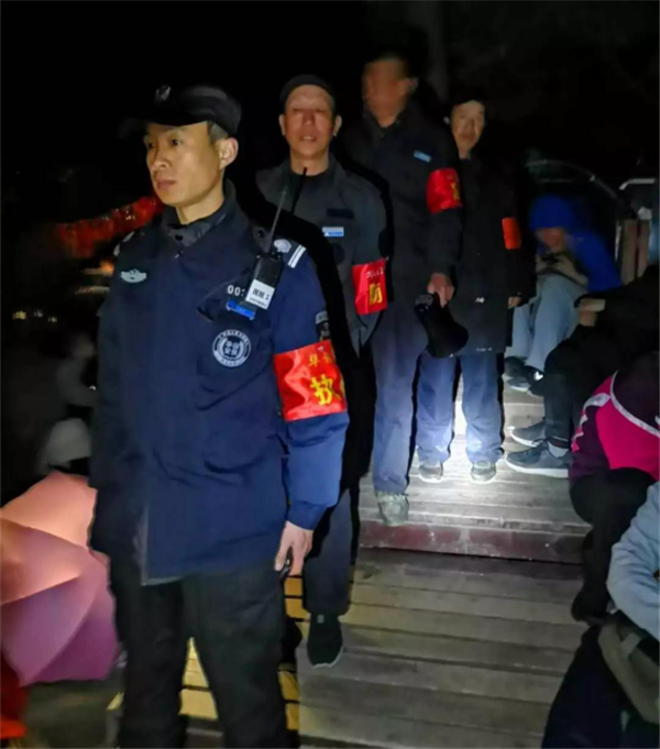 不論白天和黑夜,景區(qū)工作人員都依舊堅(jiān)守崗位。他們?yōu)榕抨?duì)游客送去熱水、幫扶老幼傷員、尋找并安撫失散游客、維護(hù)游覽秩序,確保游人安全舒心的游覽華山。