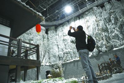 除了眾多親子游客,不少年輕人也特地前來。中影基地6號棚的江南水鄉(xiāng)拍攝小景跟前,聚集了許多年輕人圍觀一對青年體驗拍攝《大話西游》中的經典場景。全副武裝扮演至尊寶的是來自北京吉利學院的學生張江。“曾經,有一份真誠的愛情放在我面前,我沒有珍惜,等到我失去的時候才后悔莫及……”當背出了至尊寶的經典臺詞時,張江依然覺得“很尬”,難以入戲。導演趕緊上來給他說戲,“這時候劍距離你的喉嚨只有0.01公分,你要仰起頭……”這當口,飾演紫霞仙子的女同學已經拿不住劍,手腕松了下來。一個小時過去了,這一條還是沒能過,只好休息一會兒。“人生第一次嘛,體驗體驗。”張江說。
