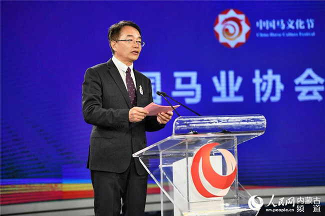 內(nèi)蒙古新華發(fā)行集團(tuán)董事長冀學(xué)博發(fā)布第二屆中國馬文化節(jié)暨首屆內(nèi)蒙古國際馬文化博覽會賽馬賽事活動。