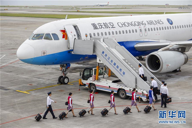 4月18日,重慶江北國際機場停機坪上,重慶航空公司的試飛機組成員在有序登機。當日,隨著重慶航空一架客機安全平穩(wěn)降落在巫山機場,標志著地處長江三峽核心區(qū)的巫山機場試飛工作圓滿成功。本次試飛對巫山機場陸空通信、導航設施、跑道道面、滑行路線、飛行區(qū)標志標識、機場凈空、飛行程序、機場運行標準等進行全面檢驗,各項參數(shù)和指標正常,機場相關(guān)設施、設備均符合行業(yè)規(guī)范要求,飛行區(qū)已基本具備民航飛機通航條件,有望在今年6月正式通航。新華社記者 劉潺 攝