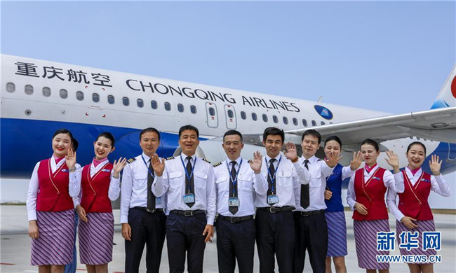 4月18日,重慶巫山機場停機坪上,重慶航空公司的試飛機組成員在試飛成功后合影。當日,隨著重慶航空一架客機安全平穩(wěn)降落在巫山機場,標志著地處長江三峽核心區(qū)的巫山機場試飛工作圓滿成功。本次試飛對巫山機場陸空通信、導航設施、跑道道面、滑行路線、飛行區(qū)標志標識、機場凈空、飛行程序、機場運行標準等進行全面檢驗,各項參數(shù)和指標正常,機場相關(guān)設施、設備均符合行業(yè)規(guī)范要求,飛行區(qū)已基本具備民航飛機通航條件,有望在今年6月正式通航。新華社記者 劉潺 攝