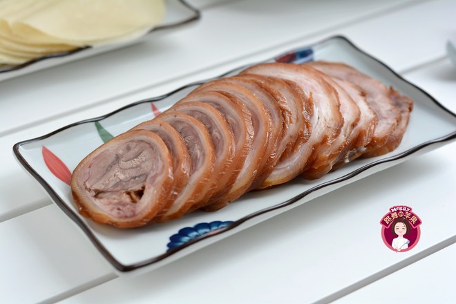 12.撈出后放在保鮮袋,置入冰箱冷藏,吃時切片裝碟,肘子切粗條,淋辣椒油、醋、與粗黃瓜絲同拌,卷薄餅非常棒!