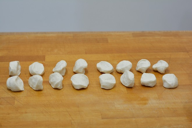 3.待手溫能接受時,手揉成較光滑的面團(tuán),蒙保鮮膜餳20分鐘;