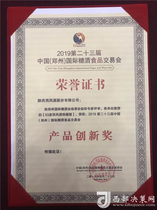 在下午舉行的糖酒會重磅活動評優(yōu)表彰大會上,西鳳酒一舉攬獲大獎,出彩鄭州國際糖酒會:53度西鳳酒珍藏榮獲“產(chǎn)品創(chuàng)新獎”,贏得了社會和行業(yè)的廣泛贊譽(yù)。