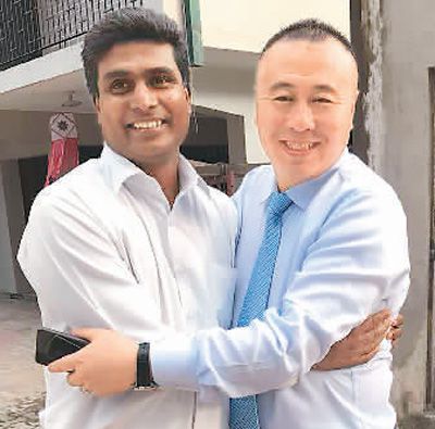 鞏雪樺(右)說,“一帶一路”倡議給像他這樣的民營企業(yè)家?guī)砹撕芏啻蜷_市場的新機會。