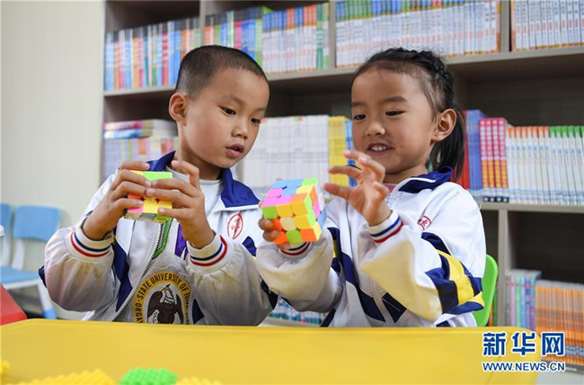 5月14日,在銅仁市松桃苗族自治縣盤(pán)石鎮(zhèn)響水洞村的山村幼兒園,孩子們?cè)谕婺Х健P氯A社發(fā)(龍?jiān)?攝)