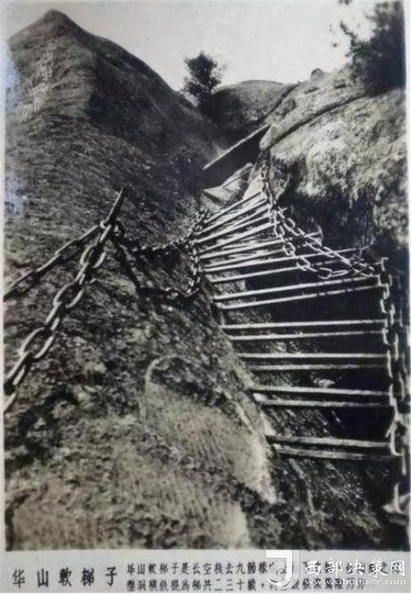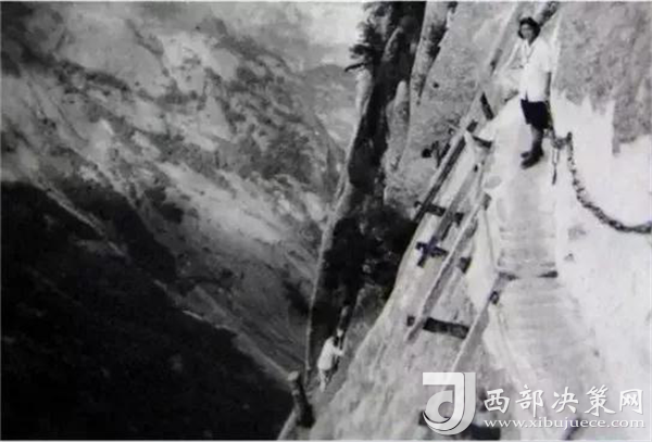 明代“后七子”之一的李攀龍《太華山記》記述:“出南天門向西就是棧道,棧雖有銅柱鐵索攔護,然闊不盈尺。行二十余丈方至盡頭。下折為井,高約三丈,旁出復為棧……”