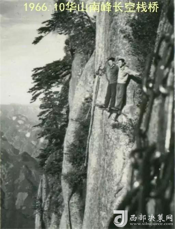 我照相的時候,一只手抓鐵鏈,一只手做動作,身體是緊貼石壁。難得的是當年一起去的一個女生給我照相,在我對面一樣危險,但女俠單手抓鐵鏈,整個身體外突懸在半空中,另一只手拿相機找一個最好角度給我拍照,我都替她擔心。——摘自網(wǎng)友2003年爬華山的游記