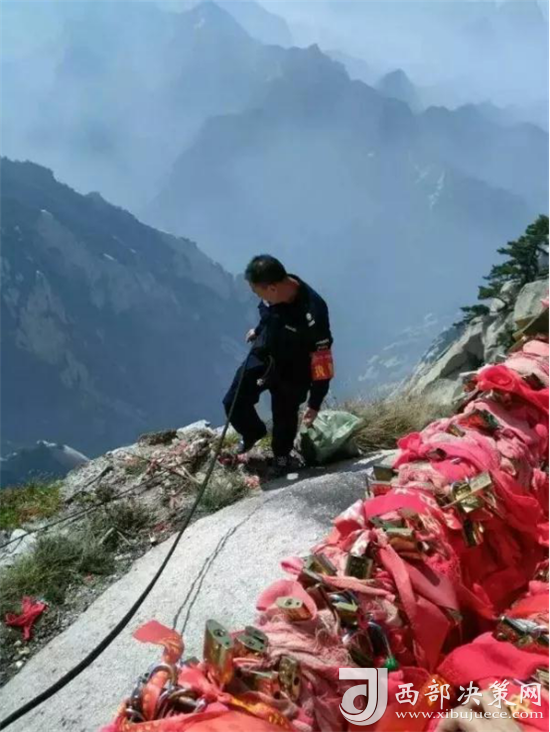 當(dāng)游客不聽勸阻屢次翻越圍欄拍照留念時(shí),耐心勸阻,警示教育是我們?nèi)A山人的家風(fēng);