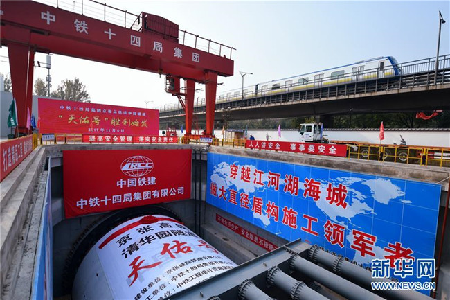 京張高鐵清華園隧道“天佑號”盾構機始發(fā)掘進(2017年11月6日攝)。新華社記者 張晨霖 攝