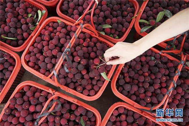 6月15日,在丹寨縣揚武鎮(zhèn)老冬村楊梅種植園,果農(nóng)在整理準(zhǔn)備出售的楊梅。新華社發(fā)(黃曉海 攝)