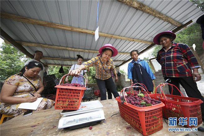 6月15日,在丹寨縣揚武鎮(zhèn)老冬村楊梅種植園,果農(nóng)在給采摘好的楊梅稱重。新華社發(fā)(黃曉海 攝)
