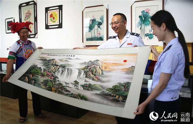 沉下心來(lái)學(xué)習(xí)刺繡的王陸芬朝著自己的小目標(biāo)努力。白天,她向村里的老人們學(xué)習(xí)刺繡技法,學(xué)習(xí)構(gòu)圖、畫(huà)圖,晚上就在家里刻苦練習(xí)。一有機(jī)會(huì),王陸芬就出去考察學(xué)習(xí)。“有一年去上海考察,看到他們的刺繡還沒(méi)有我做的精細(xì),沒(méi)想到價(jià)格還很貴。”這讓王陸芬堅(jiān)定了自己的想法,在王陸芬的帶動(dòng)下,白沙坡村成立了刺繡協(xié)會(huì),協(xié)會(huì)一開(kāi)始只有26人。2014年2月,技藝日臻成熟的王陸芬成立了“紙藝刺繡農(nóng)民專(zhuān)業(yè)合作社”,2015年成立硯山縣華韻手工刺繡有限公司。