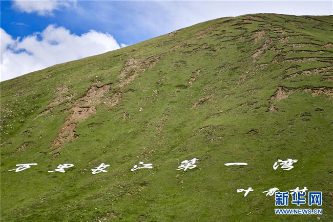 這是葉青村附近山崗上“萬里長江第一灣”的標(biāo)識(6月20日攝)。新華社記者 張龍 攝