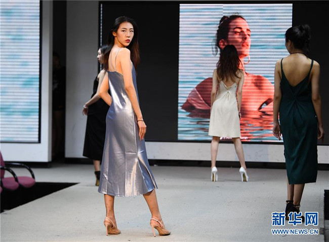 西安工程大學(xué)2018級(jí)服裝設(shè)計(jì)與表演專(zhuān)業(yè)的學(xué)生在練習(xí)動(dòng)態(tài)造型展示(5月24日攝)。新華社記者張博文攝