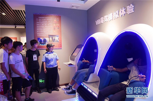 6月26日,在湖北省宣恩縣未成年人法治教育和禁毒警示教育基地,學(xué)生通過虛擬現(xiàn)實設(shè)備,了解吸毒駕駛的危害。新華社發(fā)(王俊攝)