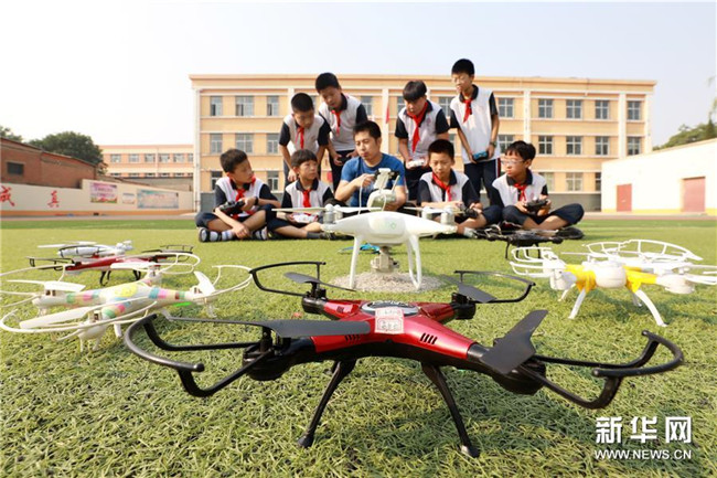 6月26日,內(nèi)丘縣實驗小學學生在參加無人機特色課程。新華社記者 朱旭東 攝