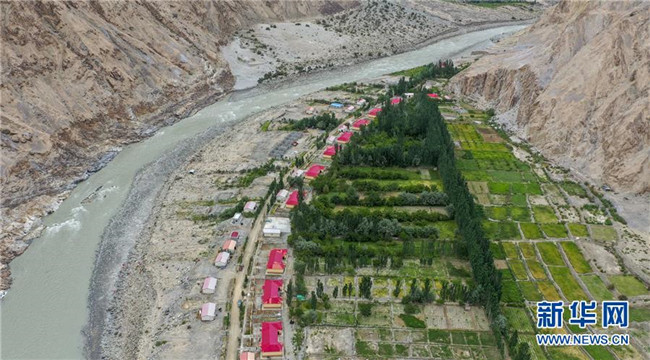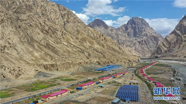 這是在新疆塔什庫爾干塔吉克自治縣大同鄉(xiāng)克其克同村拍攝的一處易地扶貧搬遷安置點(6月18日無人機(jī)拍攝)。新華社記者胡虎虎攝