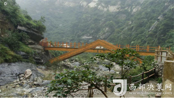 踏進(jìn)峪口,頭頂是遮天蔽日的綠色,四周水聲潺潺,鳥(niǎo)鳴悅耳,空谷幽靈,沉靜自然,涼爽的山風(fēng)夾雜著花草的芳香,瞬間就滋潤(rùn)了燥熱的心情。迎著溪谷逆水而上,山的奇特與水的靈秀交織在一起,伴著水聲,綿延著向更遠(yuǎn)處伸展。若有情致,卷起褲腿,或穿上沙灘鞋,或赤足,踏著被溪水長(zhǎng)久沖刷平整光滑的大石頭,任由清涼通透的溪水撫摸雙足,沁心入骨,仿佛拾回了童年的歡樂(lè),煩擾憂愁全無(wú)蹤影。臨水而筑的棧道,全程依水而行,曲徑通幽,每轉(zhuǎn)一道彎,都是一幅新景。