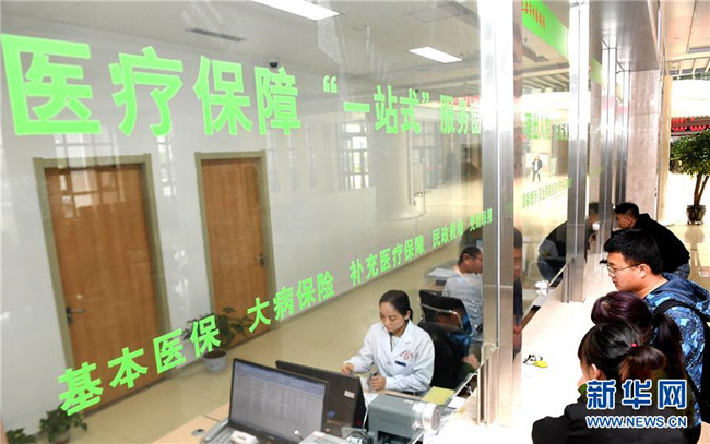 人們?cè)陉兾魇⊙影彩兄嗅t(yī)醫(yī)院醫(yī)保結(jié)算處辦理業(yè)務(wù)(5月6日攝)。新華社記者 劉瀟 攝