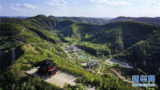 5月11日無人機(jī)拍攝的位于延安市吳起縣的退耕還林森林公園。新華社記者 陶明 攝