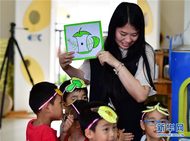 7月4日,德清縣乾元鎮(zhèn)第一幼兒園老師向孩子們講解環(huán)保知識(shí)。新華社記者 鄧華 攝