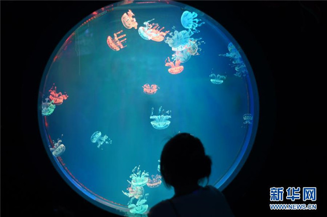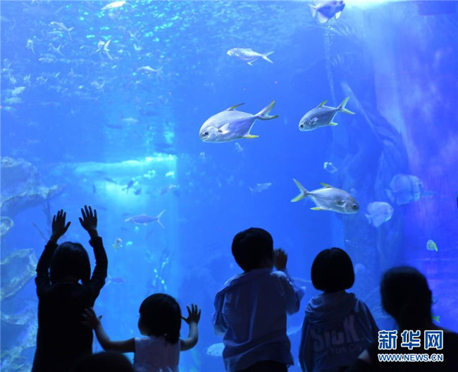 7月10日,游客在海洋世界參觀。新華社發(fā)