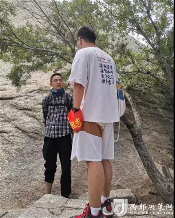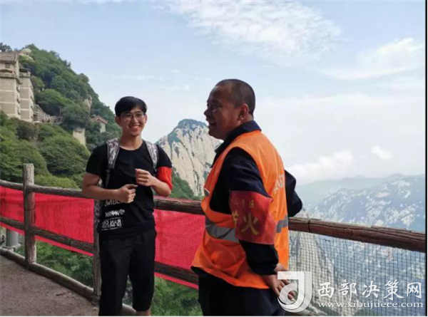 志愿者在采訪游客:關(guān)于華山環(huán)境保護問題的意見