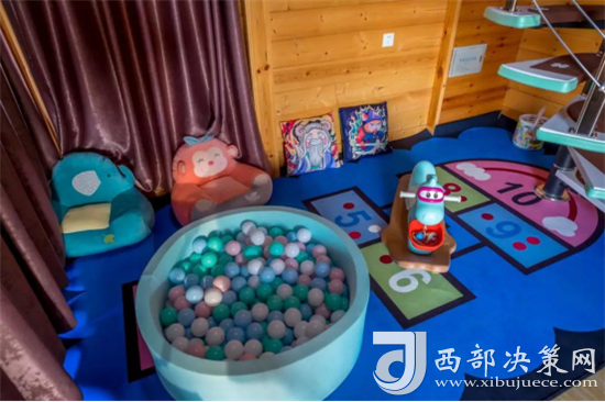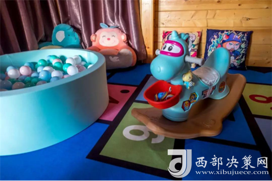 兒童休閑區(qū)以主題鮮明可愛的厚地毯作區(qū)分。休閑區(qū)有毛絨公仔、積木、卡通抱枕、小木馬、舒服的懶人沙發(fā)和海洋球池,能玩能看,可以說(shuō)這里的兒童設(shè)施已經(jīng)全都“佩奇”(配齊)了。