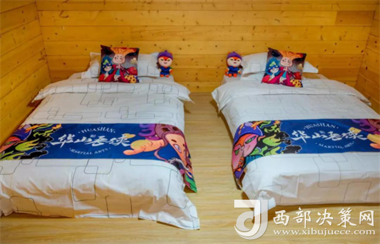 再往里邊走就是大朋友(成人)的休息場(chǎng)所,同樣以華山故事為主題布置的床,干凈整潔,元素主題鮮明,床上還為大朋友(成人)準(zhǔn)備了“華山吾俠”系列U型枕,自駕來(lái)的朋友可以帶上它,來(lái)緩解因久坐開車帶來(lái)的頸椎酸痛。