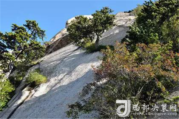 在華山北峰,過千尺幢經(jīng)百尺峽,就到了北峰最著名的老君犁溝。這里最為吸引人的,除卻“犁險于幢,幢險而犁突”的殊勝景觀,除卻老君犁溝盡頭陡峭到連山猴都難以逾越的“猢猻愁”,光是崖壁下一口幽深的石洞,就足以讓四海游人紛至沓來。足蹬石窩手攬鐵索攀上石頂,再走過一個獨木橋就到了山洞口。