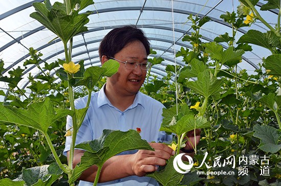 張驊在大棚里查看作物長(zhǎng)勢(shì)