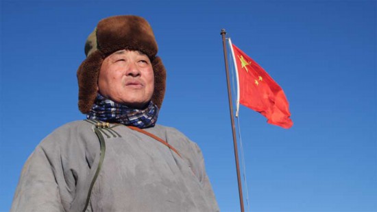 在阿迪亞家西南方向一片朝東的斜坡上,紅色磚塊擺出的“中國”兩個字格外引人注目。那是2008年阿迪亞親手擺出來的。娜仁其其格清楚地記得,當年夏季的一天,阿迪亞早早出門,一個多小時后匆匆跑回家中把正熬奶茶的她拉出屋子,“你看那是什么?”娜仁其其格順著望去,那里多了“中國”兩個大字。
