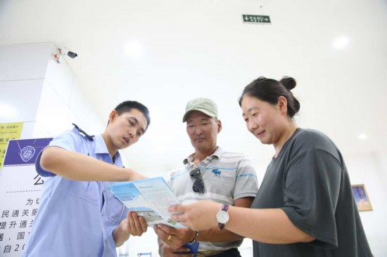 在滿都拉口岸,包頭出入境邊防檢查站執(zhí)勤業(yè)務科副科長宋強每天24小時帶著對講機。執(zhí)勤時,他的代號是“04”。