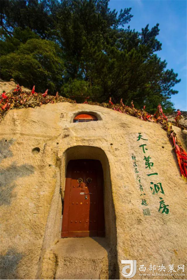 天下第一洞房位于華山西峰東側(cè)半腰,從蓮花橋經(jīng)十八譚登山路的左側(cè)即達(dá),相傳為簫史弄玉鑿洞成婚之所。