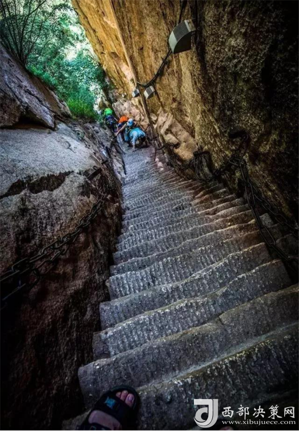 徒步登山線路二:走北峰智取華山的那條路,景點少。