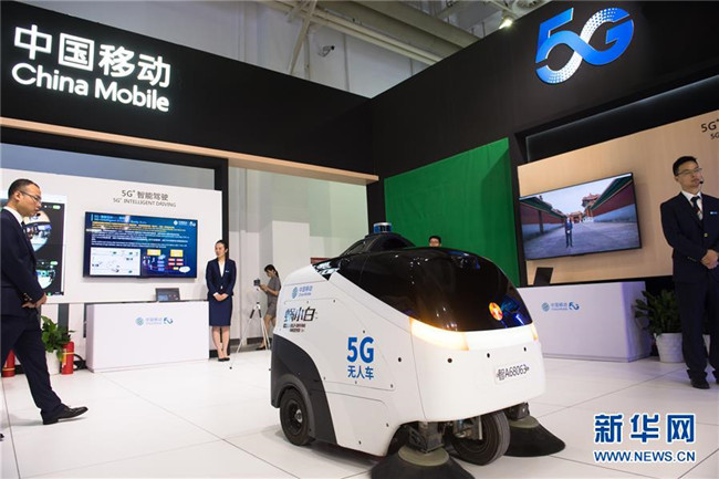6月8日,在浙江寧波舉行的首屆中國(guó)-中東歐國(guó)家博覽會(huì)上,參展商在展示5G無(wú)人清掃車。新華社記者 翁忻旸 攝